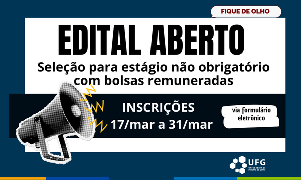 | URL relacionada: https://goias.ufg.br/n/199444-campus-goias-da-ufg-abre-selecao-para-estagio-nao-obrigatorio-com-bolsas-remuneradas |